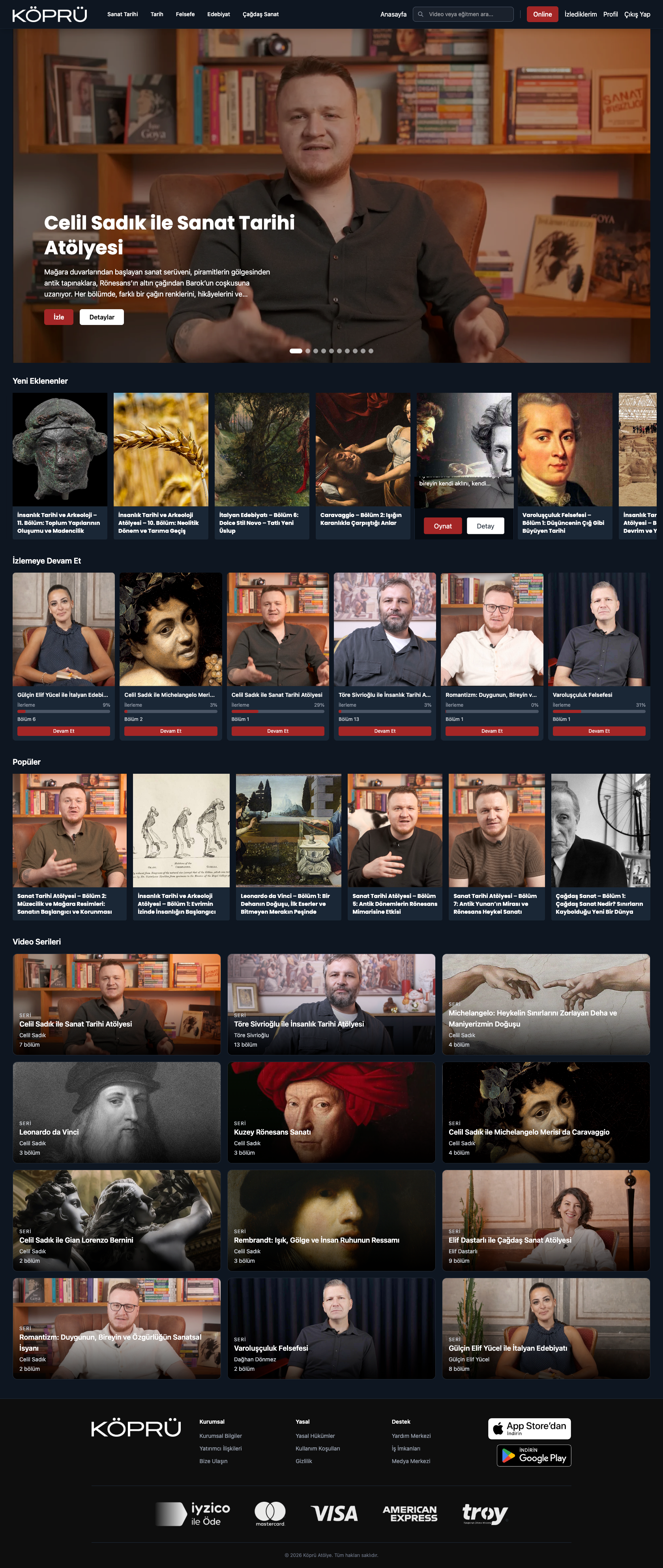 Köprü Atölye olarak uzun süredir üzerinde titizlikle çalıştığımız yeni dijital eğitim platformumuzun yayına başladığını duyurmaktan büyük bir mutluluk duyuyoruz. Bu yolculuğu sizinle paylaşmak ve ilk adımı birlikte atmak bizim için çok değerli.